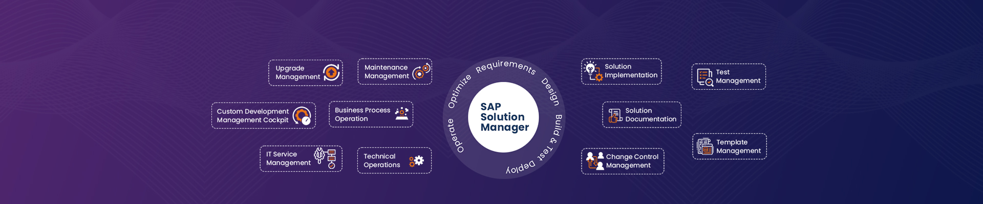 - SAP Solution Manager facilitates the structured and controlled management of changes to SAP applications. It includes a process for managing change requests, workflows for approval, and automated testing features that ensure proper testing before implementation.